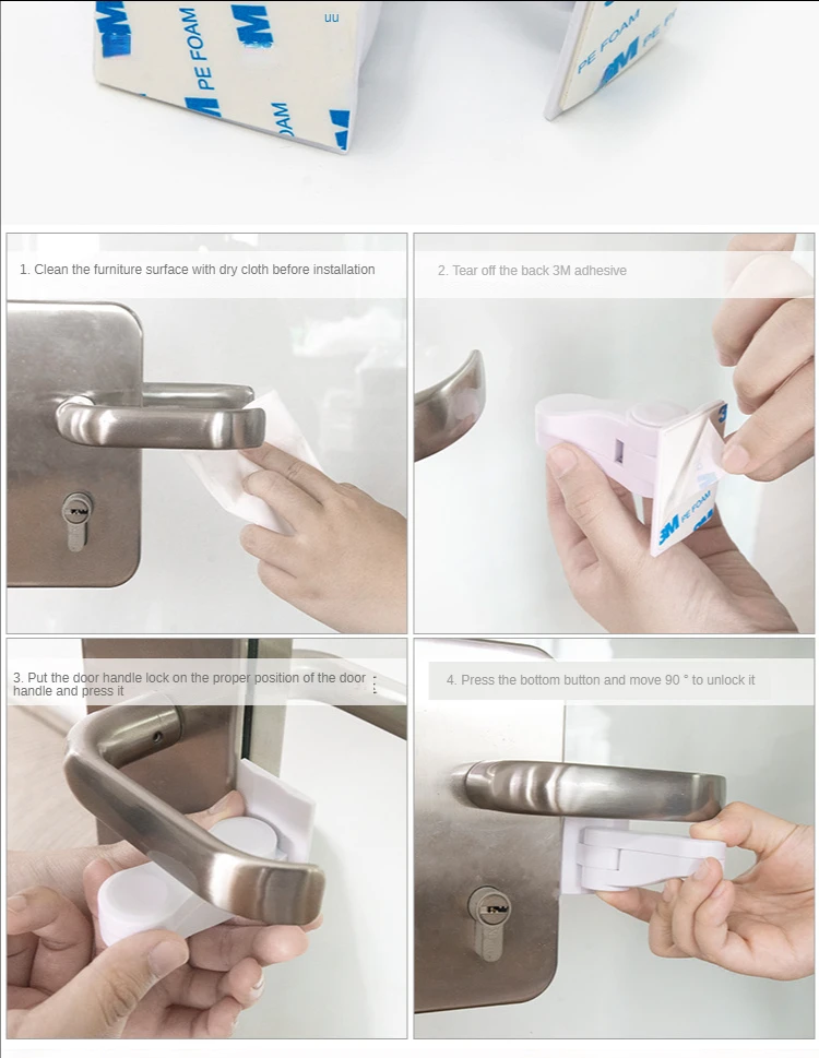 This child's door handle lock is suitable for all types of doors,especially for home use.